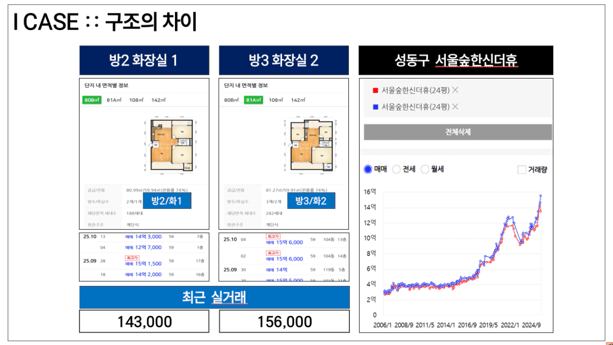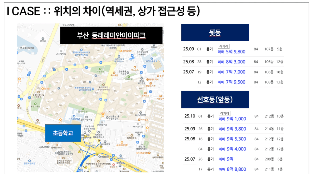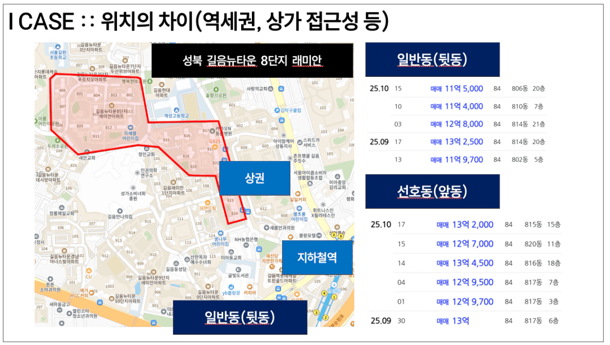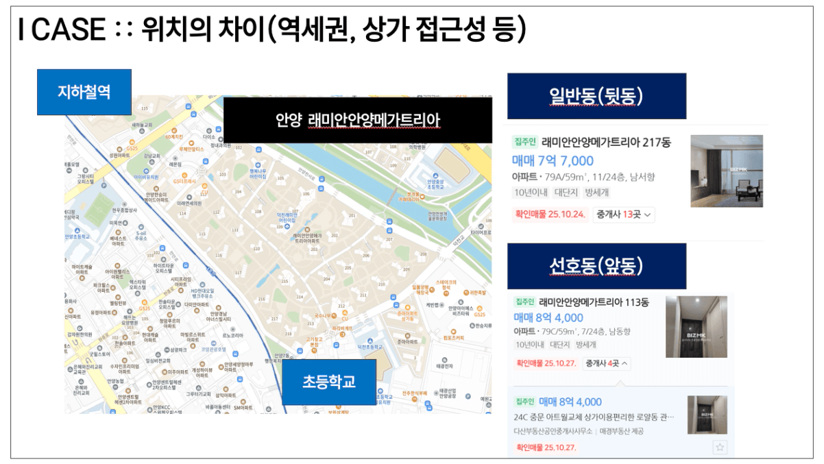 CASE 1) 위치의 차이(역세권, 상가접근성 등)