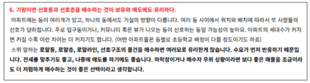 6. 기왕이면 선호동과 선호층을 매수하는 것이 보유와 매도에도 유리하다.