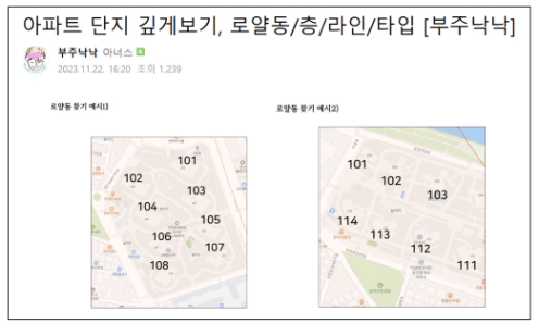아파트 단지 내부를 많이 보는 경험이 쌓이면, 사람들이 좋아하는 동이 어느정도 눈에 들어옵니다. 그리고 인터넷 상의 커뮤니티(호갱노노 직방 등)에 사람들의 의견과 부동산사무소에 들러 이야기를 나누는 것에 그 디테일을 더 할 수 있습니다.