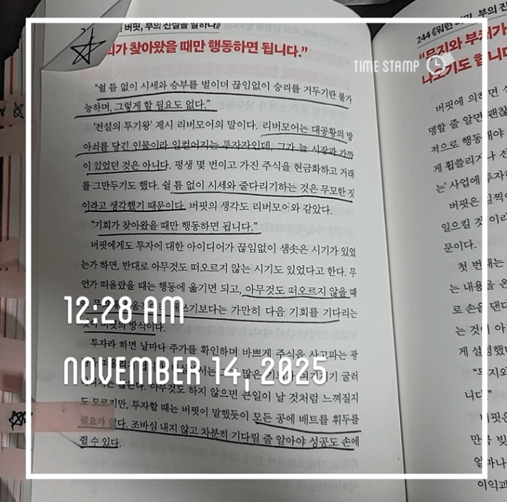p.24 사람은 책을 통해 길을 찾고 사고를 정리하지만 진짜 배움은 경험에서 온다. 그는 첫 주식투자를 통해 이를 깨달았다.