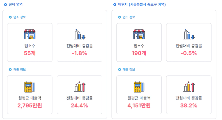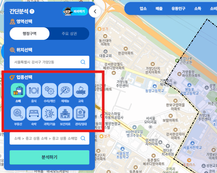 ์ ์ข ์ ์ค์ ํ๋ฉด ํด๋น ์ ์ข ๊ธฐ์ค์ผ๋ก ์ ๋์ธ๊ตฌ, ๋งค์ถ, ์ฑ๋ณยท์ฐ๋ น๋ ์๋น ํจํด ๋ฑ์ด