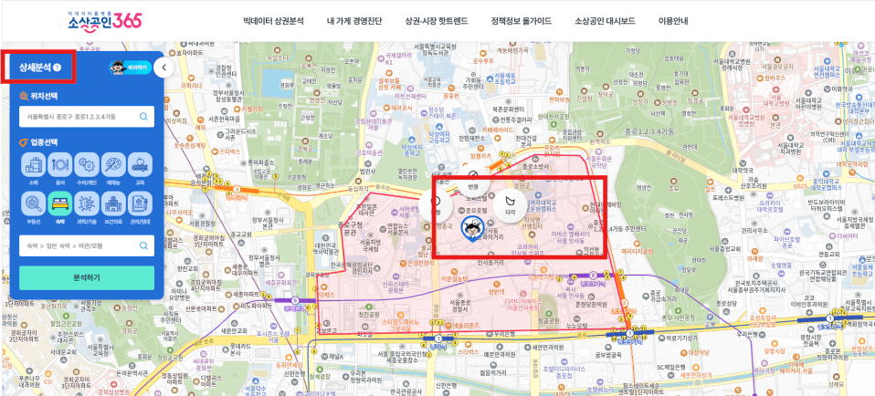 ์ข ๋ก๊ตฌ์ ์๋ฐ์์ค์ ํต์ฌ์๊ถ์ง์ญ (์ข ๊ฐ - ์ข ๋ก3๊ฐ - ์๊ตญ์ญ ๋ฐ์ค์๊ถ)์ ํด๋ฆญํด ๋ดค๋๋ฐ,