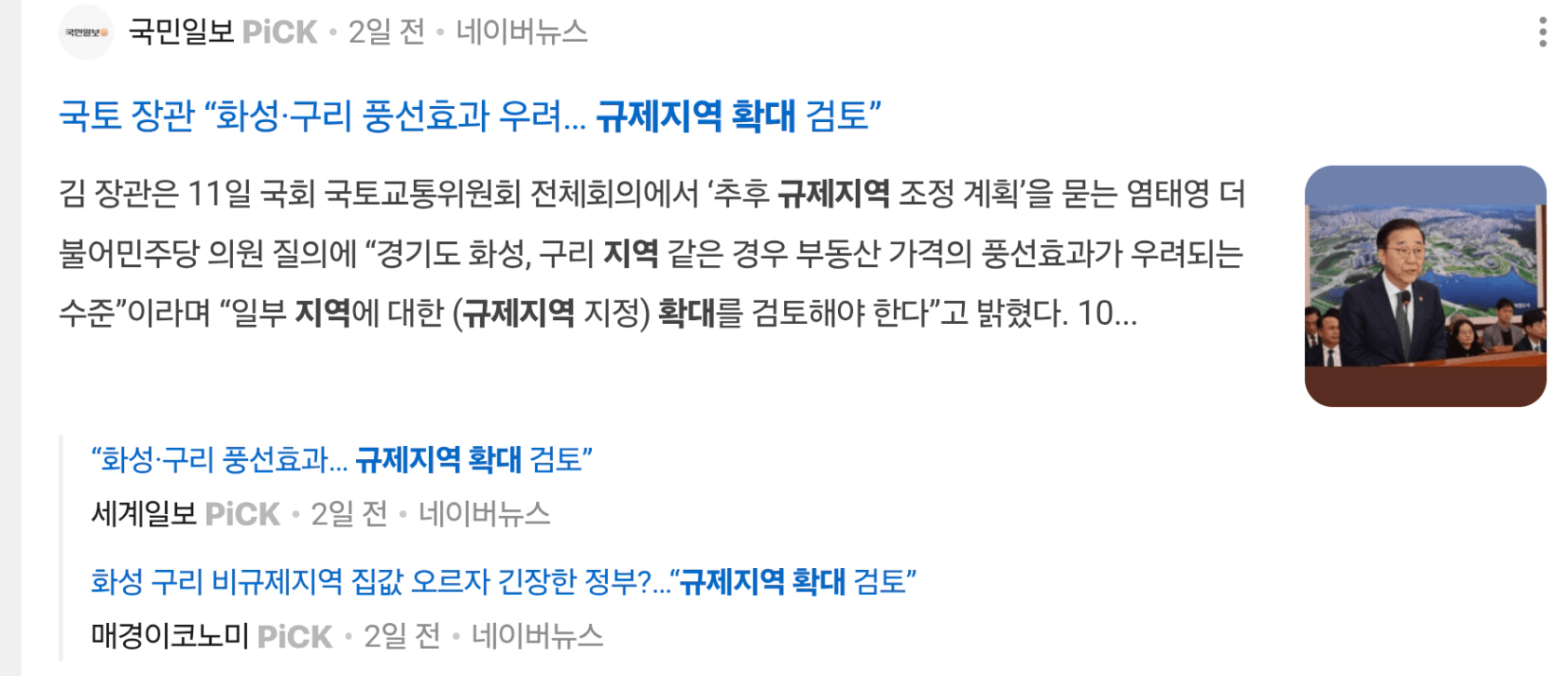 몇일전 규제지역을 더 확대하겠다는 기사가 나왔습니다.