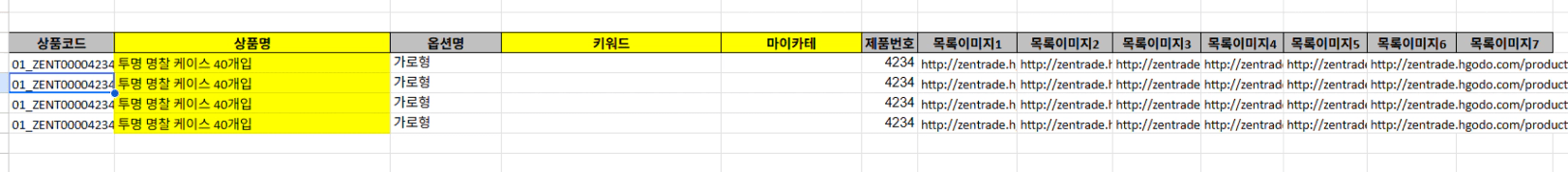 여기서 상품명만 확인하는게 아닌 도매처에서 제공하는 목록 이미지 1-7까지 있는 것을 같이 확인하여 작업을 지시하는게 목표였습니다.