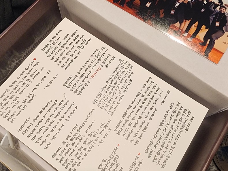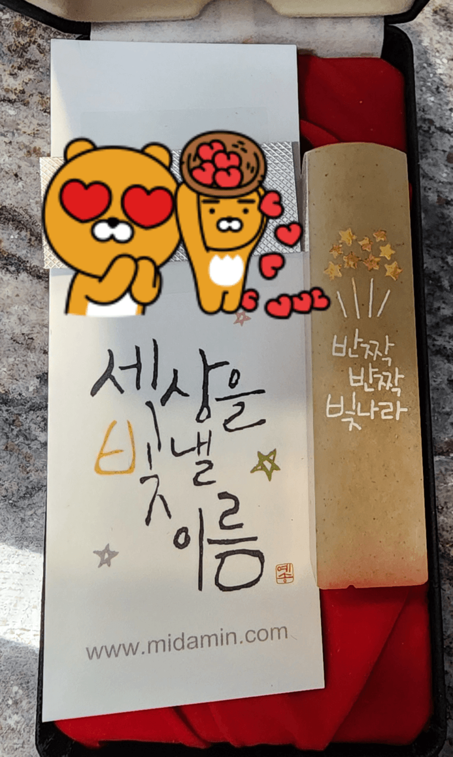 오늘 찍은 사진으로 시작해서, 편지, 임장에 필요한 핫팩이 되는 보조배터리 그리고 그 과정을 결과로 이끌어내는 마지막단계에 필요한 도장까지....