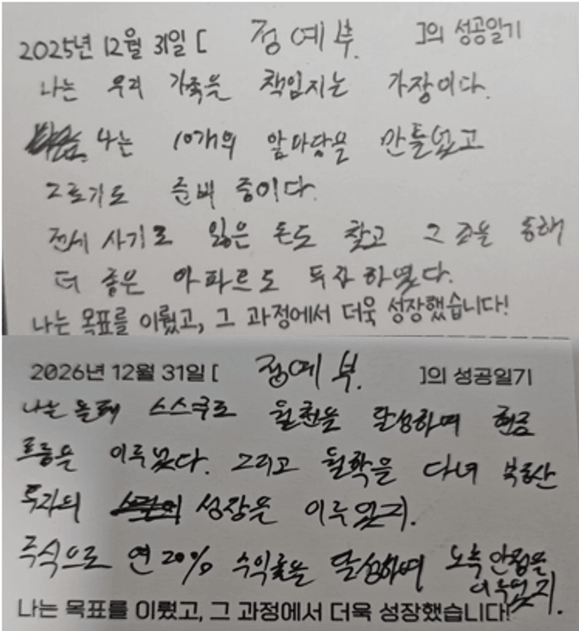 24년에 적은 성공일기를 집에 돌아와서 찾았습니다.