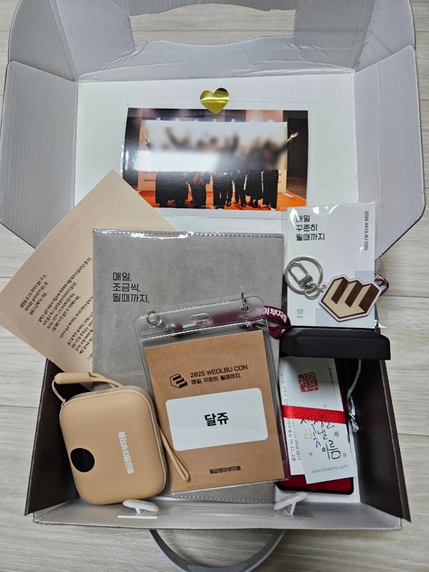 단체사진+필사노트+월부키링(NFC라서 월부닷컴 바로 들어가집니다.)+핸드워커 보조배터리+도장+월부 직원분들의 손편지까지… ㅠㅠㅠㅠ