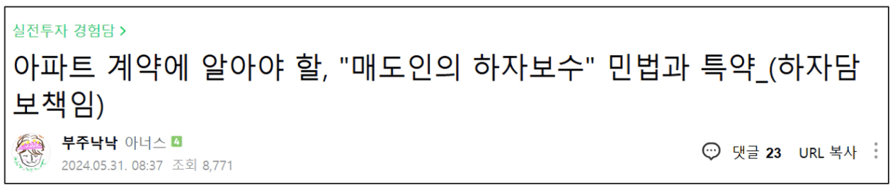 아파트 계약에 알아야 할, "매도인의 하자보수" 민법과 특약_(하자담보책임)