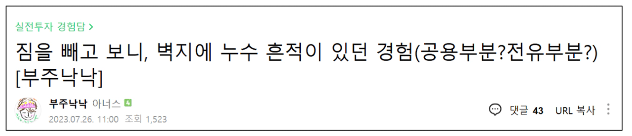 짐을 뺴고 보니, 벽지에 누수 흔적이 있었던 경험(공용부분?전유부분?)