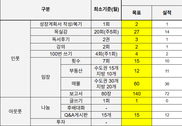 ㄴ 주단위로 체크하고 복기하고 개선 하기