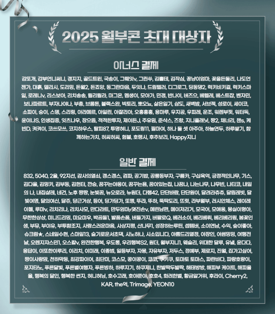 워렌부핏님, 우지공님, 동그란마음님, 베리베리링님, 별하나반짝님, 와아앙냥냥님, 응답이님, 최단미님, 투명혀니님