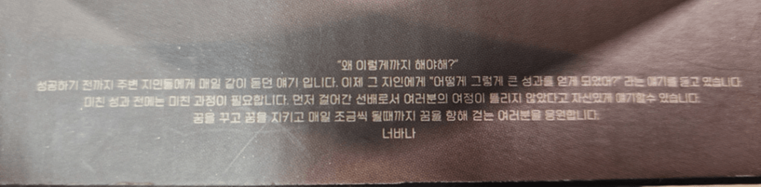 마지막으로 굿즈 상자 손잡이에 문구….정말 힘이 되는 말씀을 이렇게 세심하게 해주셨드라고요.