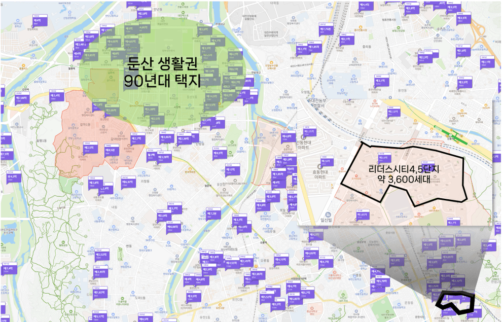 너무 물론 둔산 생활권 쪽도 균질하지만