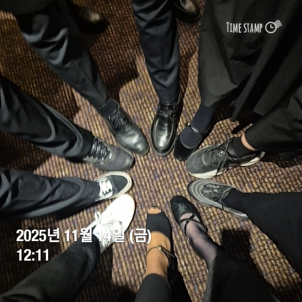 다들 검정색 정장에 빨간색으로 포인트를 준 착장으로 오셨습니당 :)