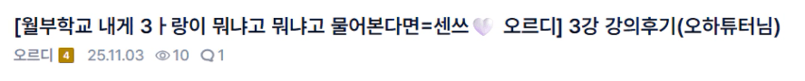 나눔글 주제가 빨리 생각나지 않다보니 1개를 못썼다.