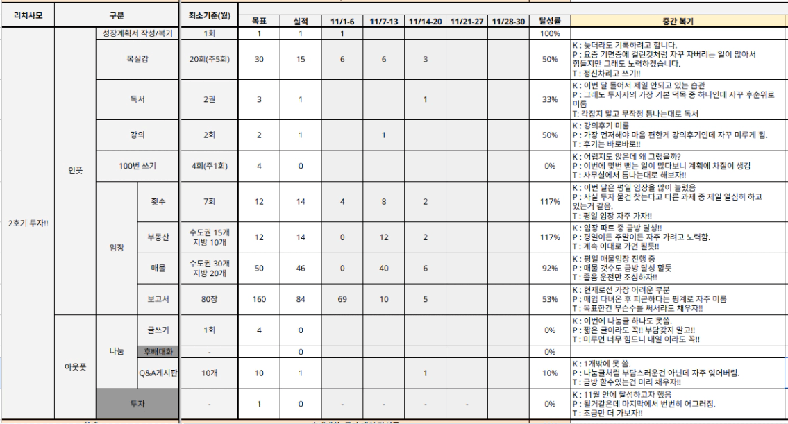 (2) 깨달은 것: 11월 되기 전에 나눔글 달성하겠다고 다짐했는데 투자 물건 찾는다고 또 후순위기 되어버렸음.