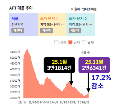서울 전세 매물이 연초와 비교하면 17.2% 감소했습니다(3만 1,814건 → 2만 6,341건)