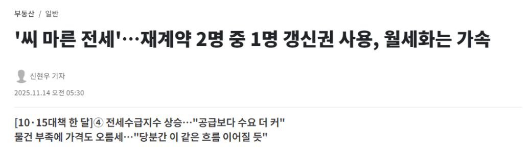 대출 규제로 집 사기가 어려워진 실수요자들이 "차라리 지금 집에서 2년 더"를 선택하면서 이 권리 사용이 급증했습니다. 결과적으로 전세 매물이 시장에서 더 사라진 것입니다.