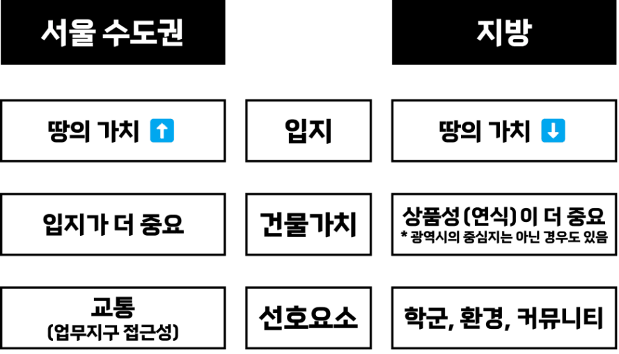지방은 땅의 가치가 덜 하고 연식이 중요한 만큼