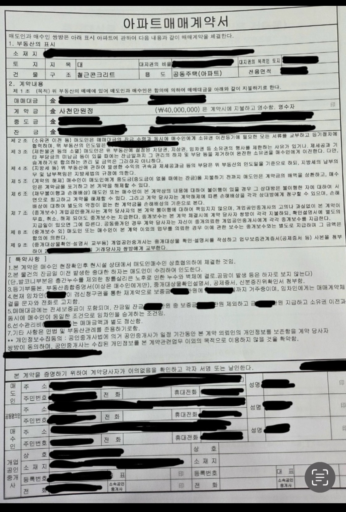 안녕하세요! 제가 오늘 1호기 계약을 하러 가는데 계약서 내용 괜찮은지 여쭙고 싶습니다🙇🏻‍♀️ 세낀 물건 매수입니다.