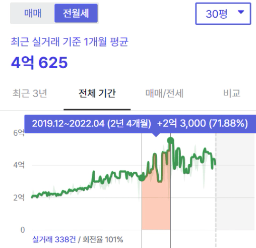 과거 전세난 + 임대차2법 콤보 덕분에 전세가격이 2년에
