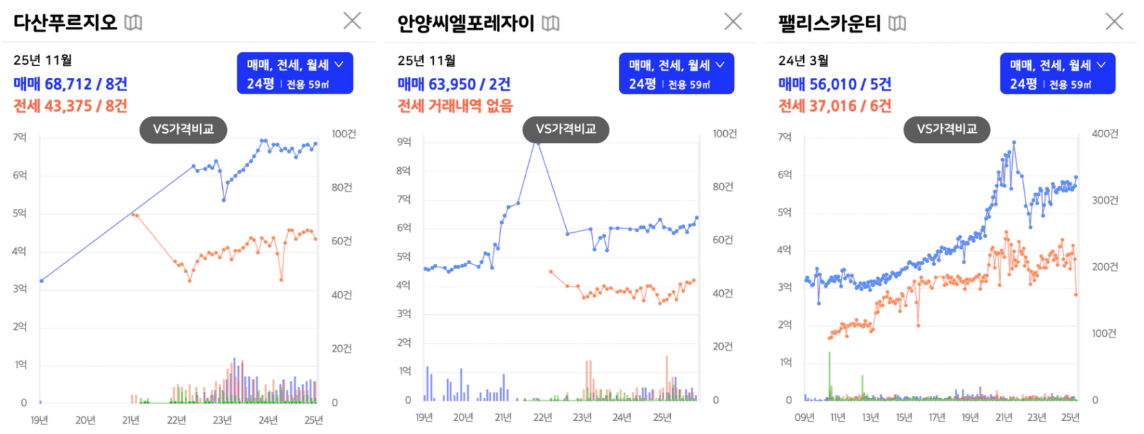그래도 만안구라는 위치에 있는 신축, 1호선 이용 가능, 월판선 호재 정도면 나쁘지 않은 곳이죠