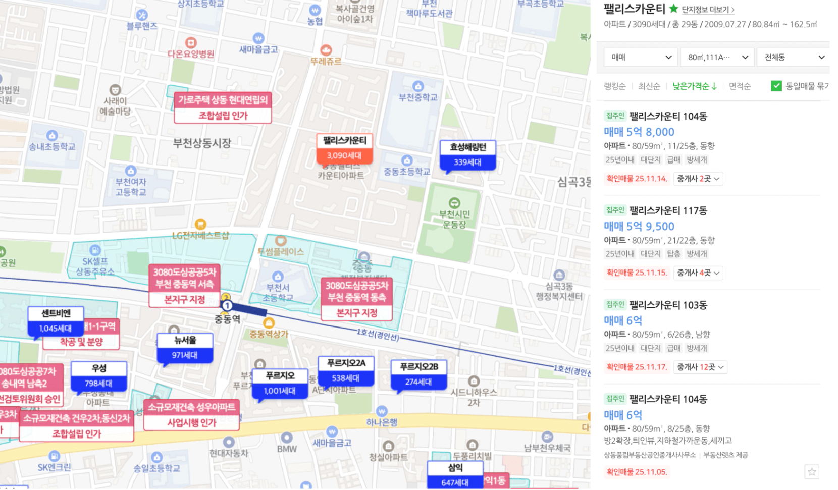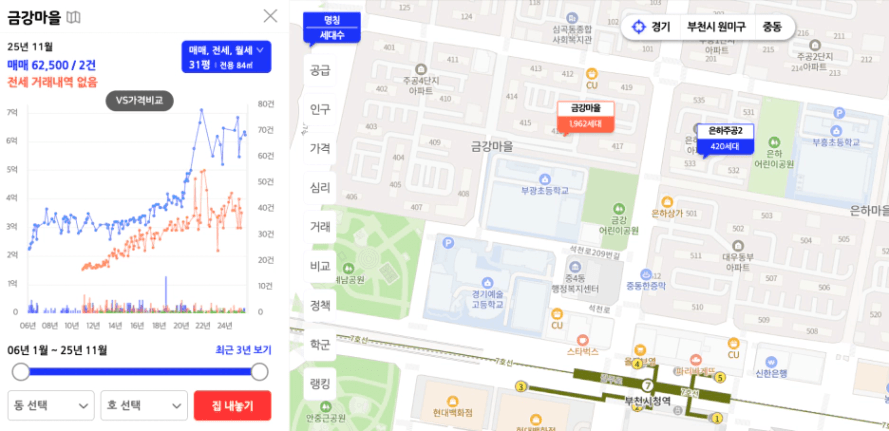 부천도 3~4억대에 구축 단지 중에 59타입 거래가 많습니다