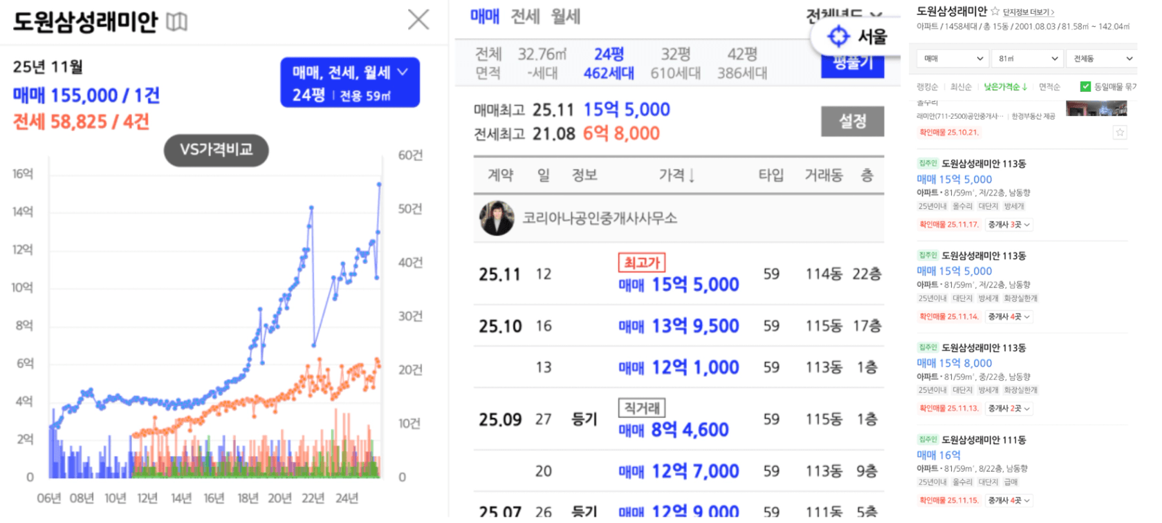 도원삼성래미안 59타입이 엄청난 신고가를 찍으며 거래됐네요.