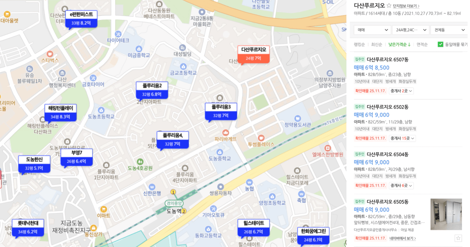그런데 여기서 잠깐, 아까 59타입 볼 때 확인했던 단지 가격 기억나시나요?