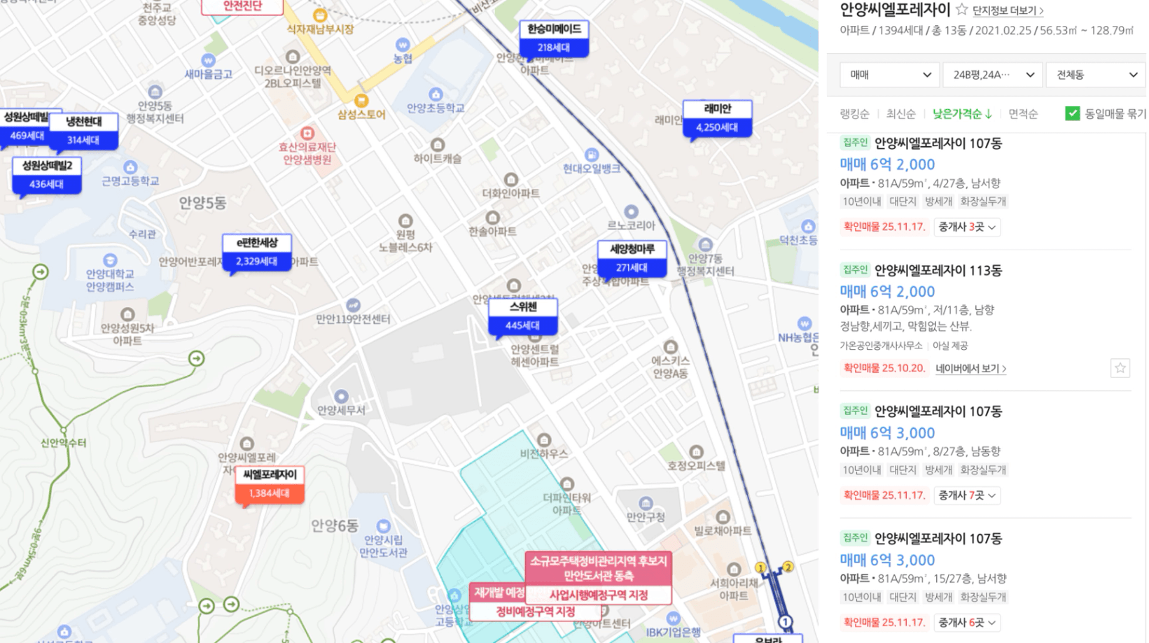 옆에 안양어반포레랑 살짝 연결... 되...된다고 우겨볼 수 있을 것 같고요. 주변에 신축이 계속 들어올 곳입니다.