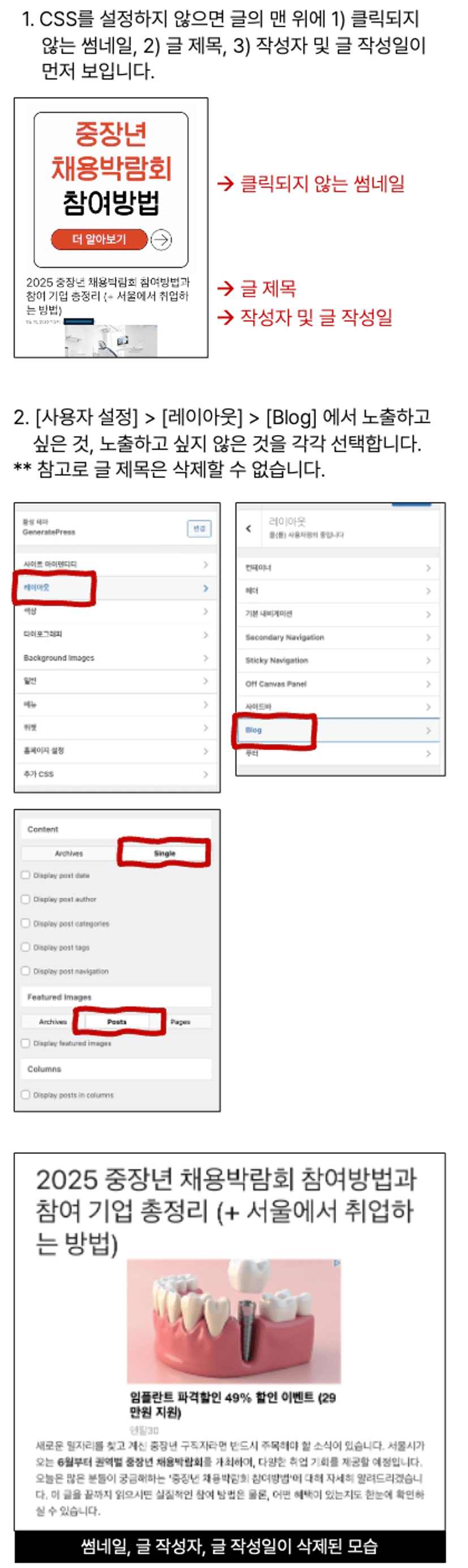 (2) CSS 없이도 썸네일/작성자/작성일 삭제 가능
