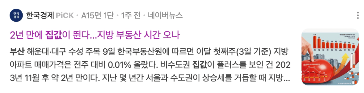 집값이 2년 만에 상승한다는 기사를 봤습니다.
