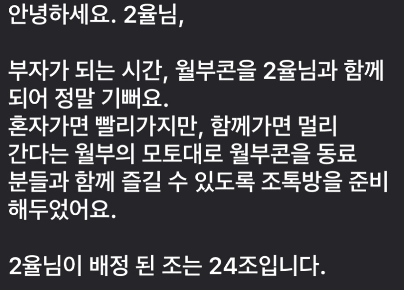 그래서인지 더 두근두근했다. 월부콘 가기 전에 OT도 하고, 역할 분배까지 싹— 마무리!
