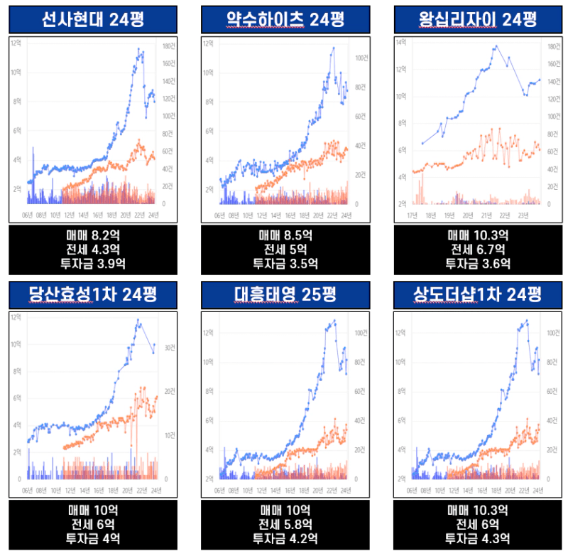 서울 2~3군의 선호도가 높은 단지들로 당시 투자금 3.5억~4.3억 사이로 투자할 수 있었습니다.