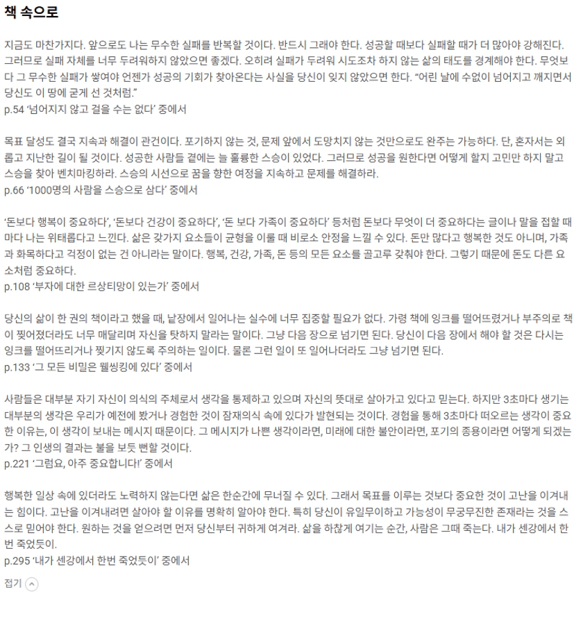 그저 “성공하기 위해서 좋게 생각하세요!”가 아니라 A to Z로 알려주기 때문에 행동으로 이어질 수 있었다.