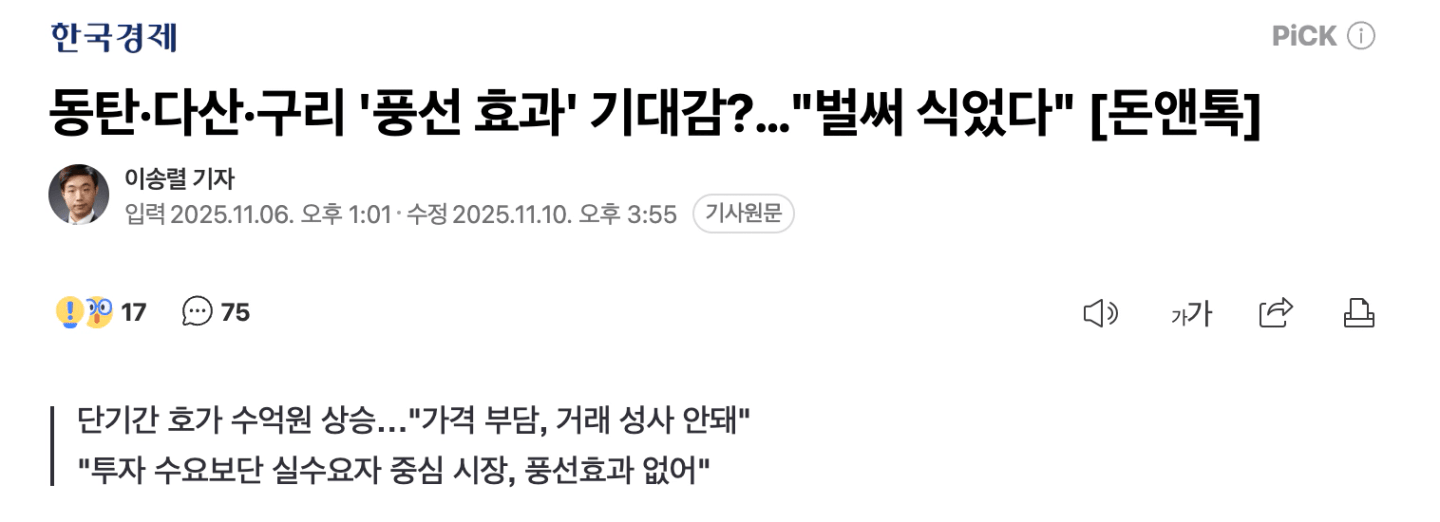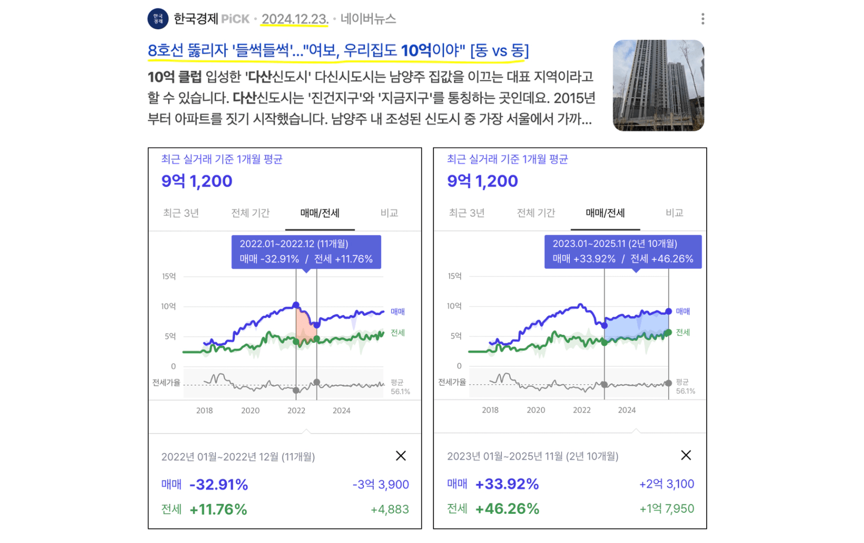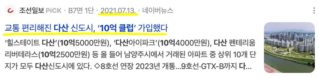 10억 클럽에 가입했던 다산신도시, 기억하시나요?