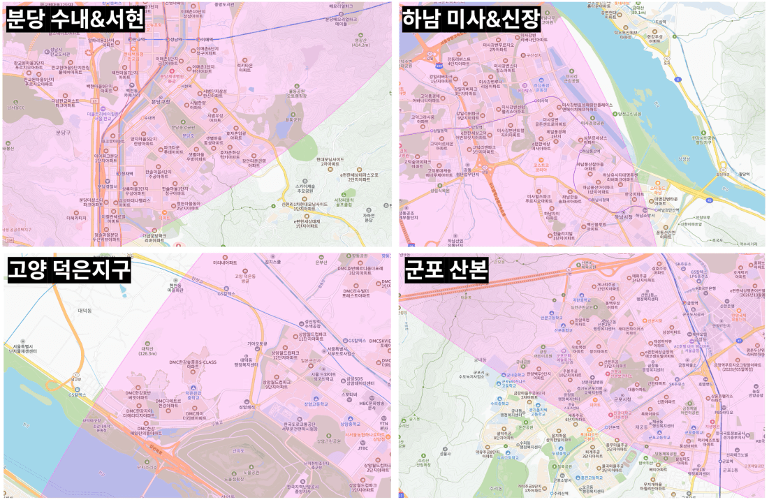 대표적으로 위 4개의 지역과 비슷한 반경 내에