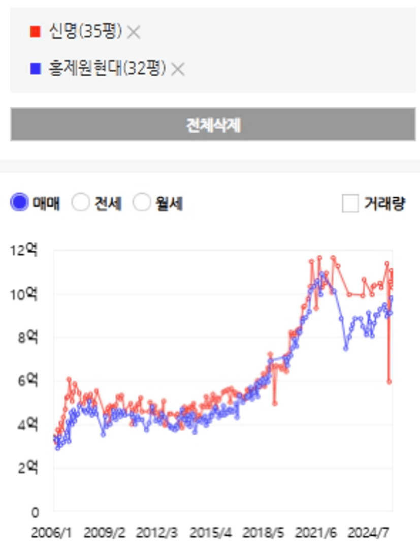홍제원현대가 10억, 구리 신명이 11.5억으로