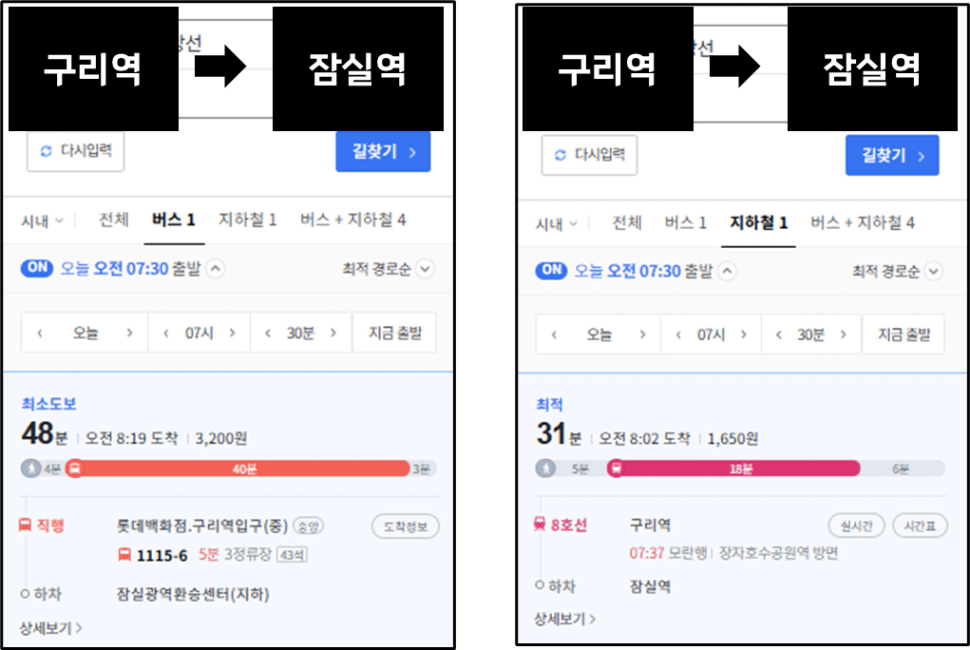 무려 도보 까지 생각해도 20분 가량 시간이 단축되었습니다.
