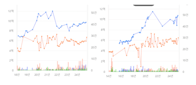 비슷한 전고점을 가지고 있어 두 단지 모두 투자해도 좋다는 판단을 내렸습니다.