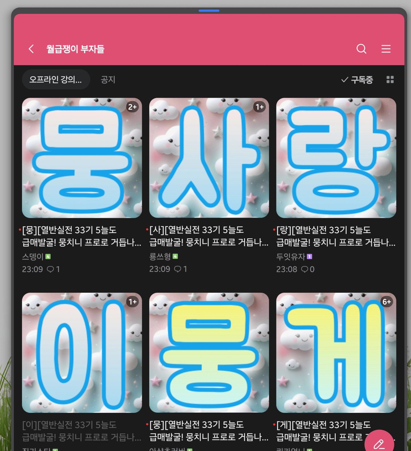 [이][열반실전 33기 5늘도 급매발굴! 뭉치니 프로로 거듭나조_닉] 뭉치조 뭉사랑이 뭉게뭉게~🩵
