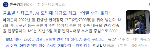 AI도입으로 인력감축은 글로벌 빅테크기업부터 시작되고 있고,