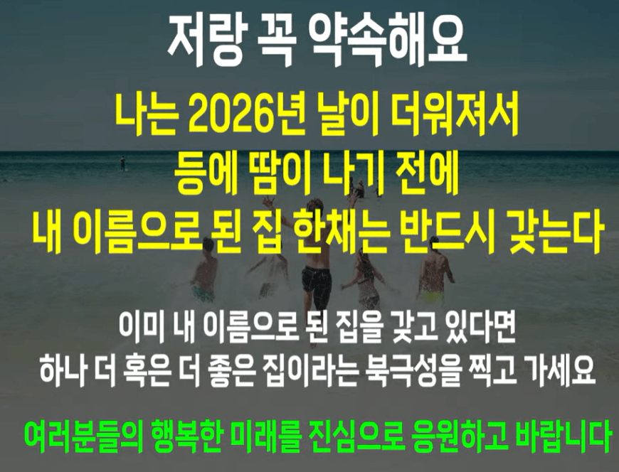 나는 2026년 날이 더워져서 등에 땀이 나기 전에 내 이름으로 된 집 한 채는 반드시 갖는다!