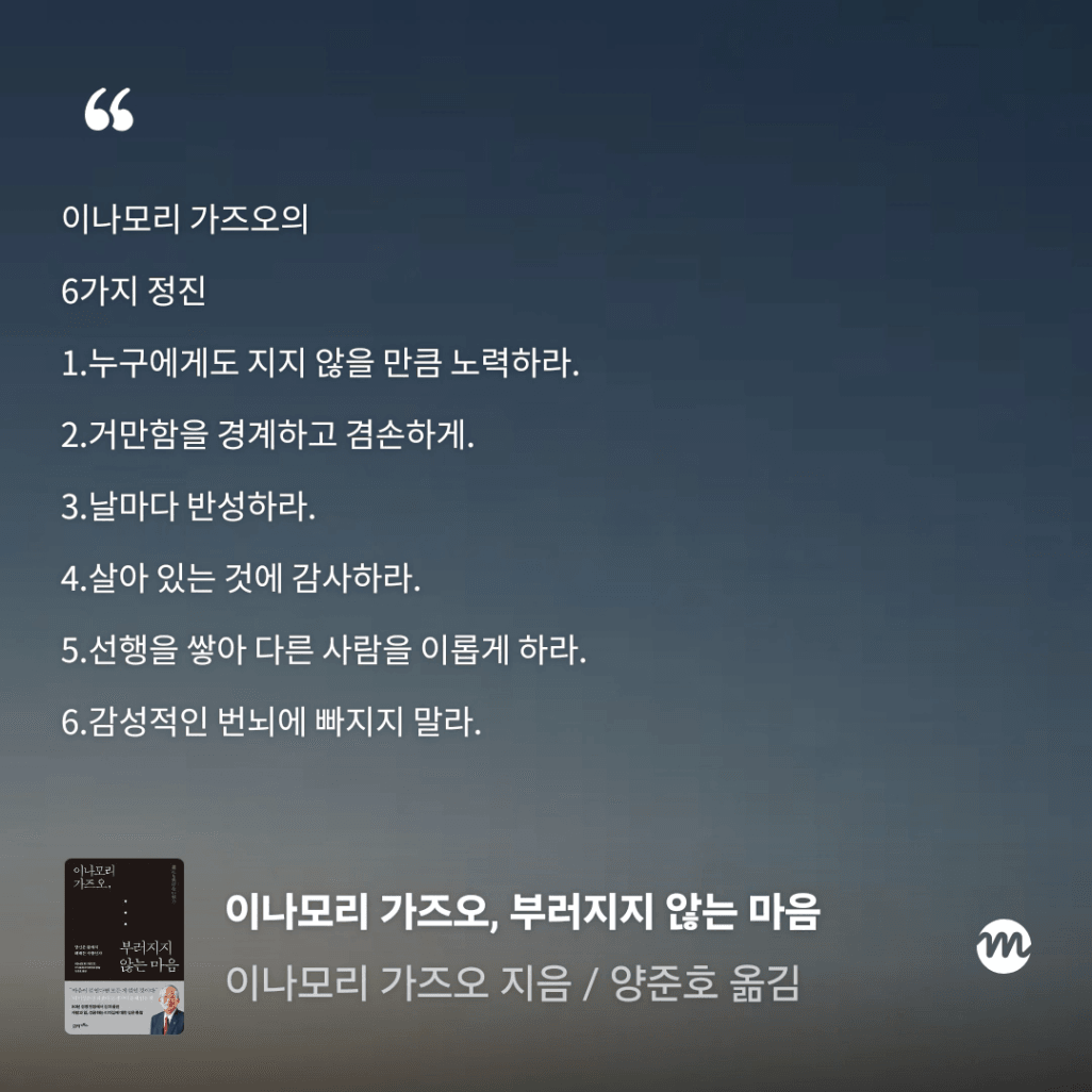 256p 인간에겐 무한한 능력과 가능성이 있으니 변명을 늘어놓고 포기하지 않길 바랍니다. ‘어떻게든 하면 어떻게든 되지 않을까’라고 생각해야합니다. 그것이 바로 ‘인간의 무한한 가능성을 추구하라’는 진정한 의미입니다