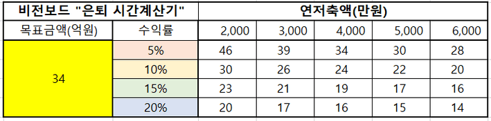 STEP3. 수익률에 따른 은퇴 가능 시기