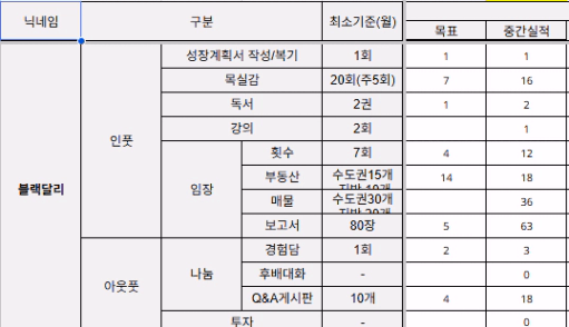 행동 : 동료들에게 먼저 연락하기/시세루틴 하루 50개씩/와이프 회사를 위한 루틴 지키기