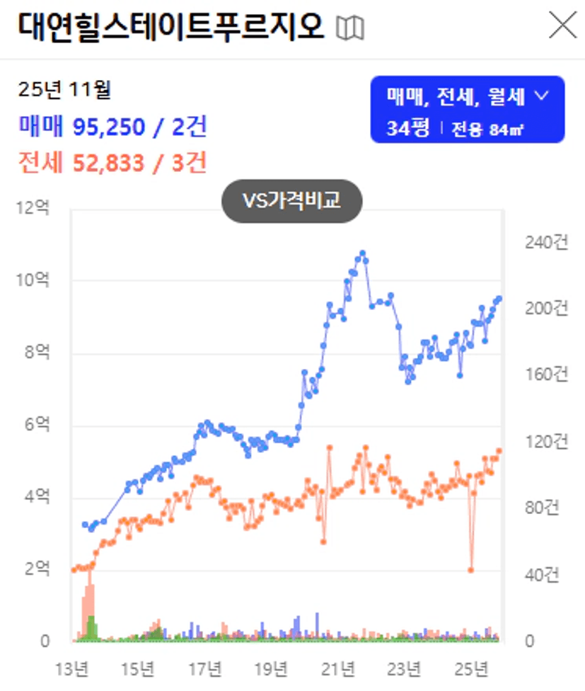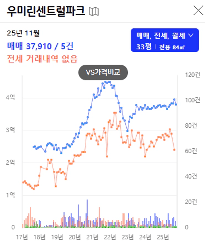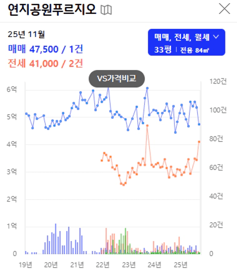 (전세가는 고가 거래가 1건 뿐이어서 지켜봐야 할 것 같아요)