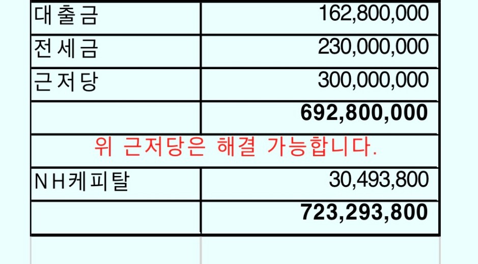 안녕하세요~~ 안나0314님! 댓글을 달려다 위의 표에서 헷갈리는 부분이 있는데 대출금: 누가 대출 받은건가요? 전세금: 임차인이 전세대출을 받은건가요? 근저당: 집주인이 집을 담보로 받은 대출인거죠? 심플하게 집에 저당 잡힌 금액들이 얼마냐를 봐야하는데 위는 전세금 + 근저당 해서 5.3억이 지금 담보로 잡혀있는 물건으로 보입니다. 매매가가 5.4억이기때문에 약간은 위험하지만 근저당 말소등기 조건으로 중도금을 준다면, 집주인이 받은 중도금으로 근저당부터 말소 해야 하고 (그럼 공부상 채권관계는 깨끗해지는것) 그런다음 전세를 줘야하는데요, 보통 중도금을 저렇게 많이 주지는 않긴합니다. 근저당 말소조건부 전세대출 역시 은행마다 나오는데가 있고 아닌데가 있는데요. 이부분도 은행마다 달라 사실 확인이 필요합니다. 그리고 아래 3천만원의 NH캐피탈은 어떻게 되는 걸까요? 이부분도 확인이 필요합니다. 다소 위험이 있다고 접근못할 물건은 아니라고 생각 되긴 하는데요 단 저당물건 가격보다 채권액이 반드시 낮을것 (여유있게) 근저당은 실제 근저당금액인건지, 채권최고액이 저 금액인지 확인할 것 그리고 계약 전에 근저당 말소 조건으로 대출 불가 시 계약 취소 등의 특약을 넣을 것 전세입자를 놓기 전에 공부상 이력이 하나도 없이 깨끗해야 할 것 이런 조건들이 가능한지 확인해보시면 좋을것 같습니다! 차근차근 확인해보세요~!
