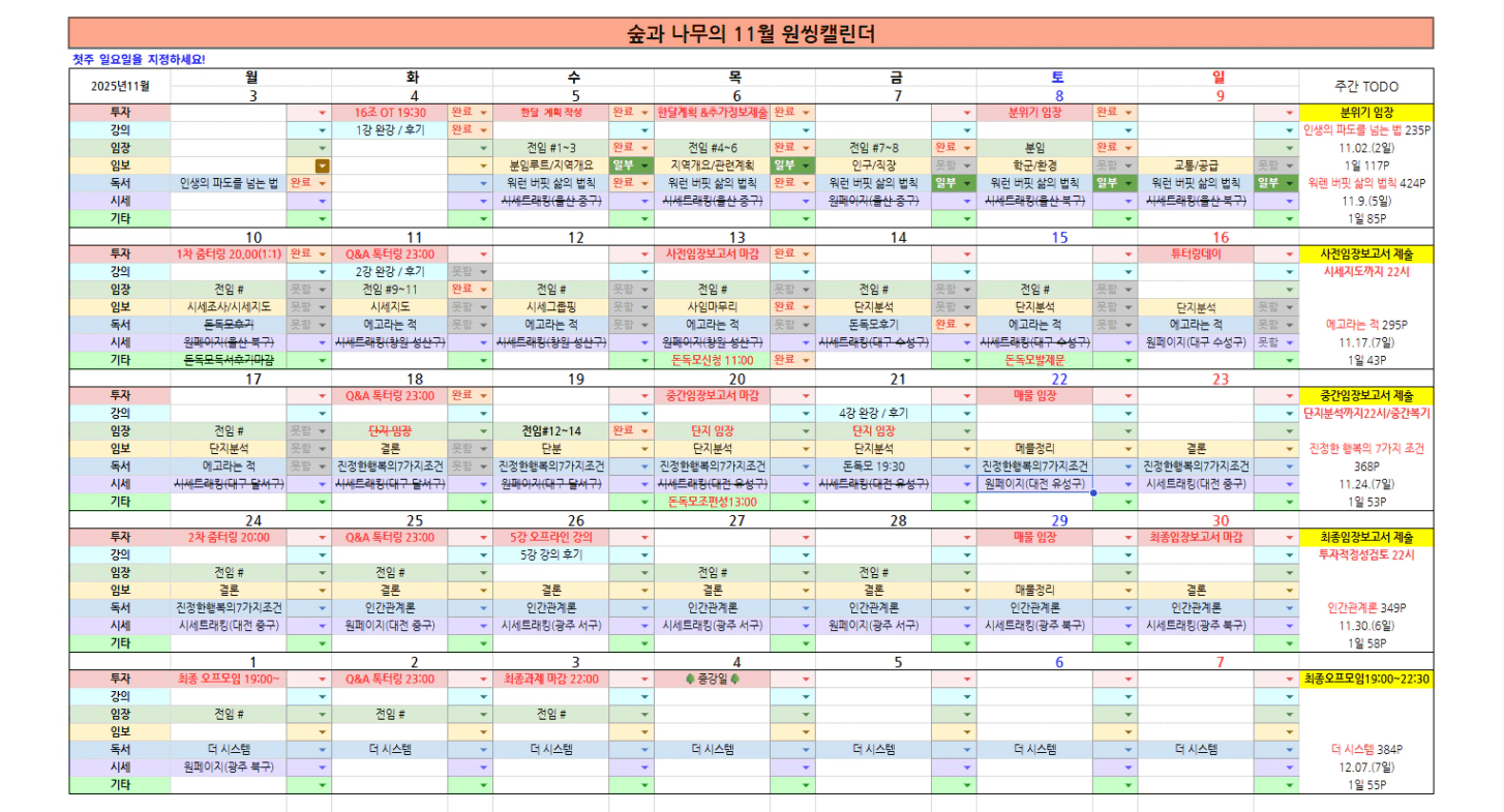 11월 시작하면서 다부지게 다짐하며 계획했던 원씽들을 체크를 해보니ㅠㅜ