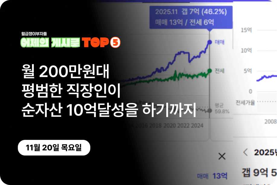 [어제의 게시글 Top5] 월 200만원대 평범한 직장인이 순자산 10억달성을 하기까지
